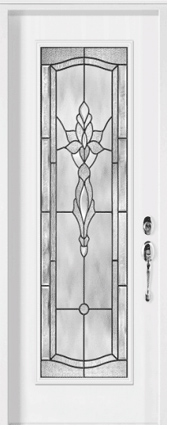 Arabesque | Glass – Beveled glue-chip, Clear Niagara, Chinchilla, Hammered, Clear Beveled of various shapes, Available Finishes – PL: Welded lead, N: Antique welded lead, Privacy Rating – Half-opaque
