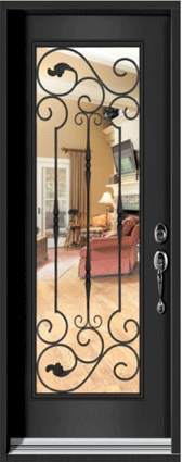 The ancient craft of wrought iron has been enjoying a comeback these last few years. Veree Select offers its customers the option to fit those sumptuous architectural accents within their choice of decorative glass panel. This product, which is also available with low-e glass, will give you years of comfort and security and never fall out of fashion. The Excalibur series is available in Clear or Obscur option.